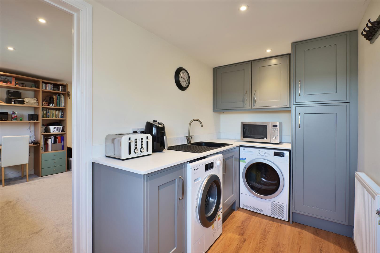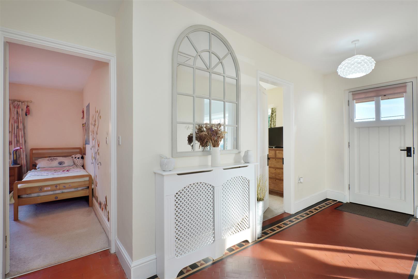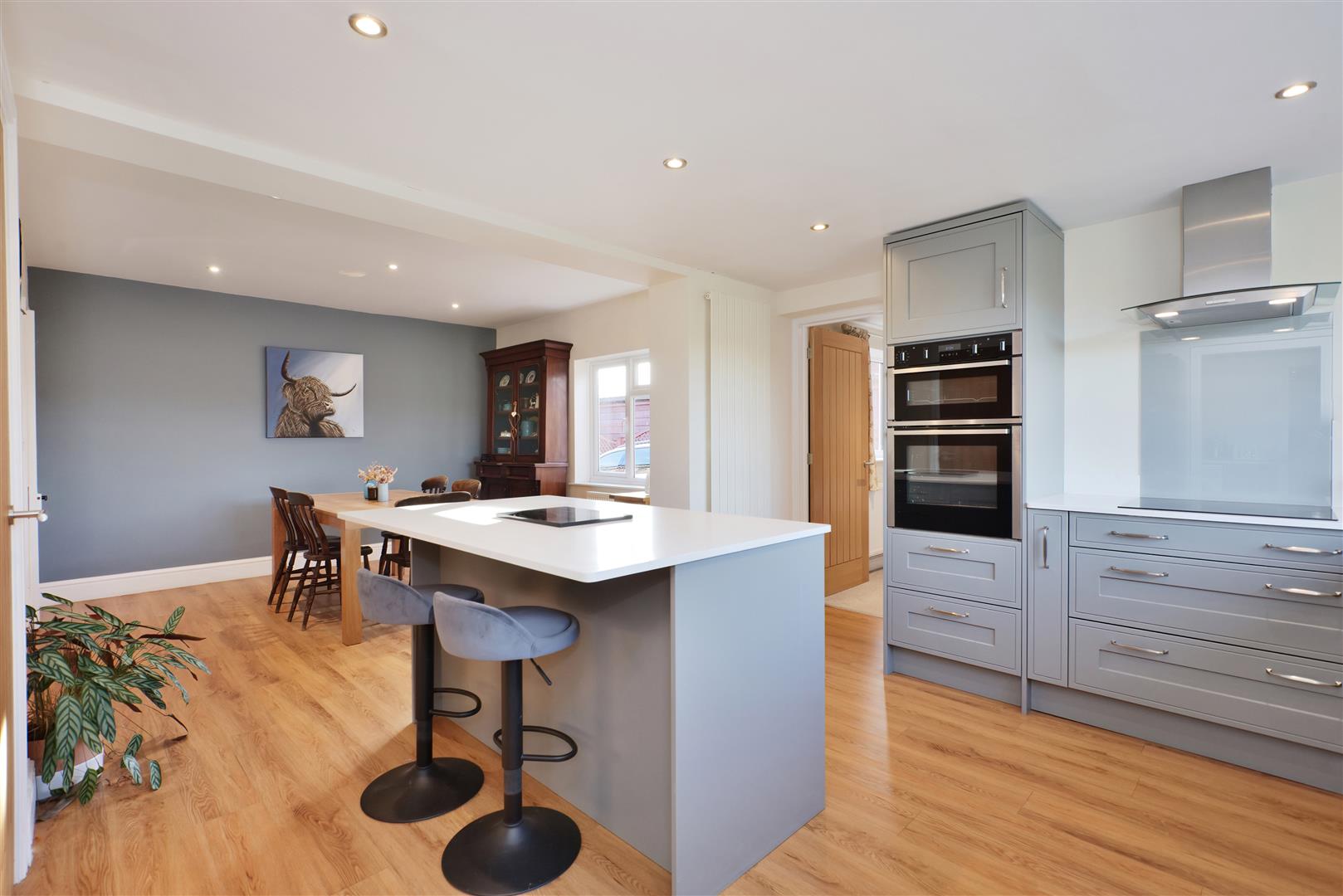 On arrival, a covered porch and front door lead into a wide reception hall with original decorative tiled floor with coat hooks to one side and access to useful roof space. A door then leads into a good-sized sitting room with walk-in south facing bay window to the front, which overlooks the drive and gardens. The kitchen family room is an impressive space and an ideal place to gather and talk about the day. With windows to the side and rear there is plenty of natural light and the contemporary kitchen has a good range of fitted cupboards and drawers as well as a central workstation and breakfast bar, along with a range of fitted appliances, including an induction hob, extractor, double oven and dishwasher. Next door a useful utility provides further cupboard and laundry space and has direct access to the rear gardens. A door then links and links through to a study/or potential fourth bedroom.