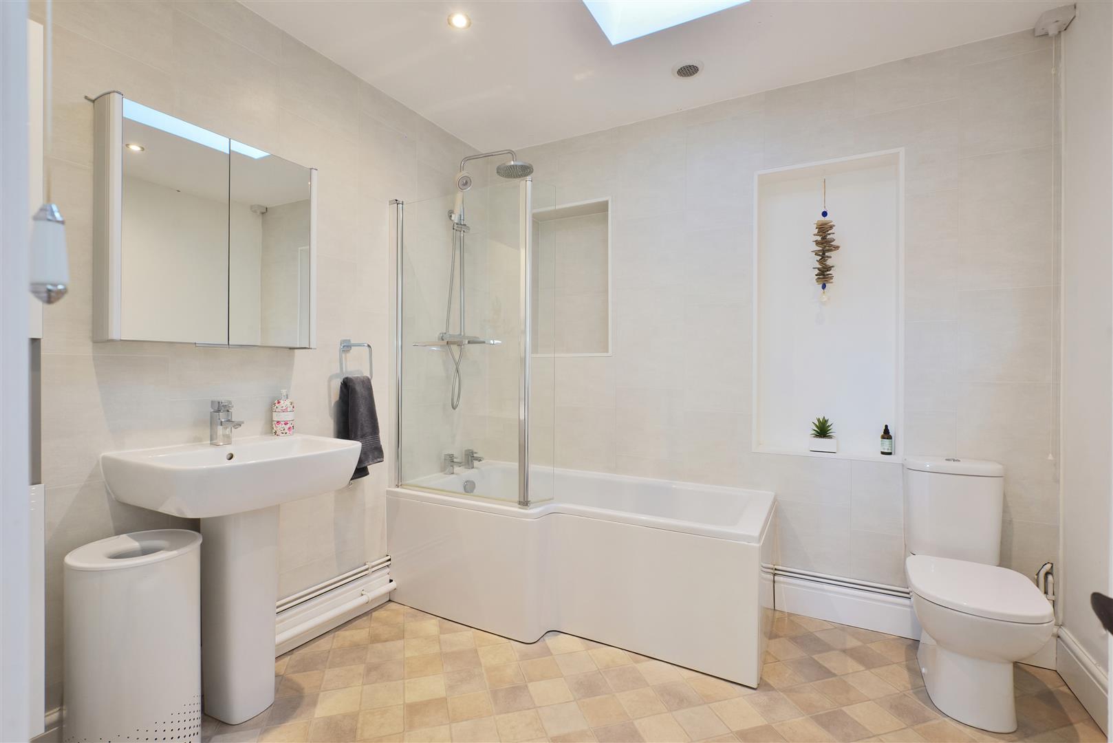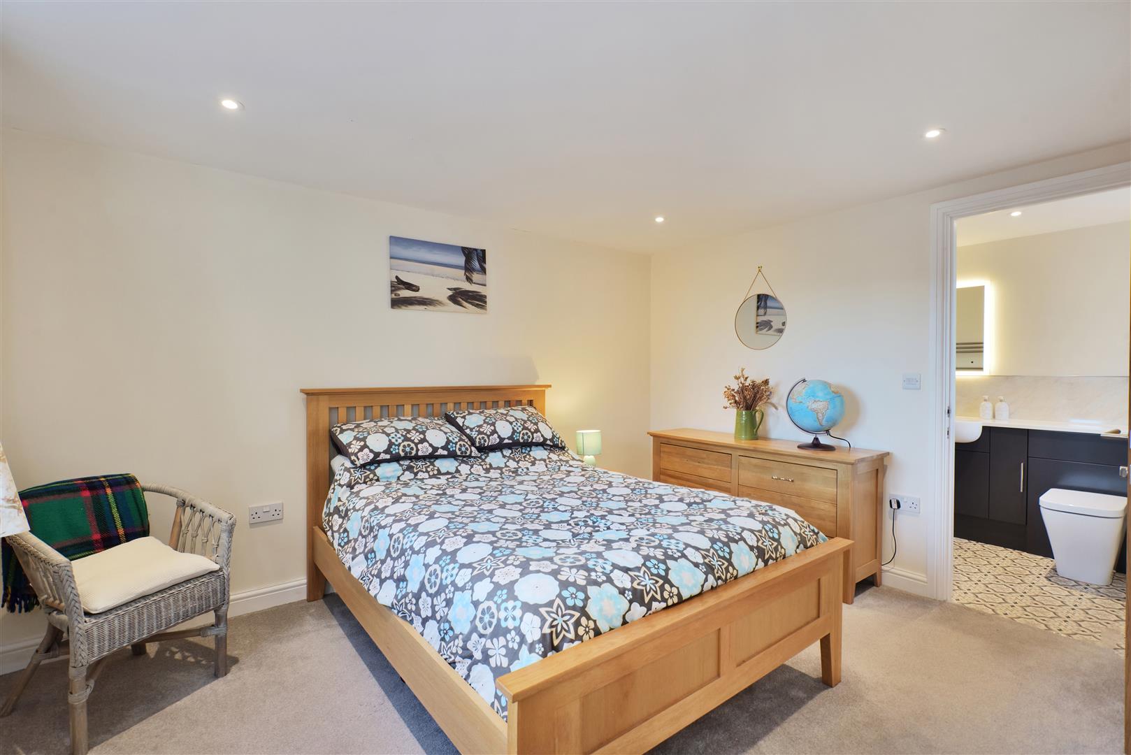 From the reception hall access can be gained to two double bedrooms, one south facing with a walk-in bay to the front and plenty of space for wardrobes. Both these bedrooms are supported by a good-sized and modern family bathroom with shower over the bath. A guest suite or master bedroom then completes the accommodation and is a lovely space with fitted carpet, radiator, and large en-suite with a double shower.