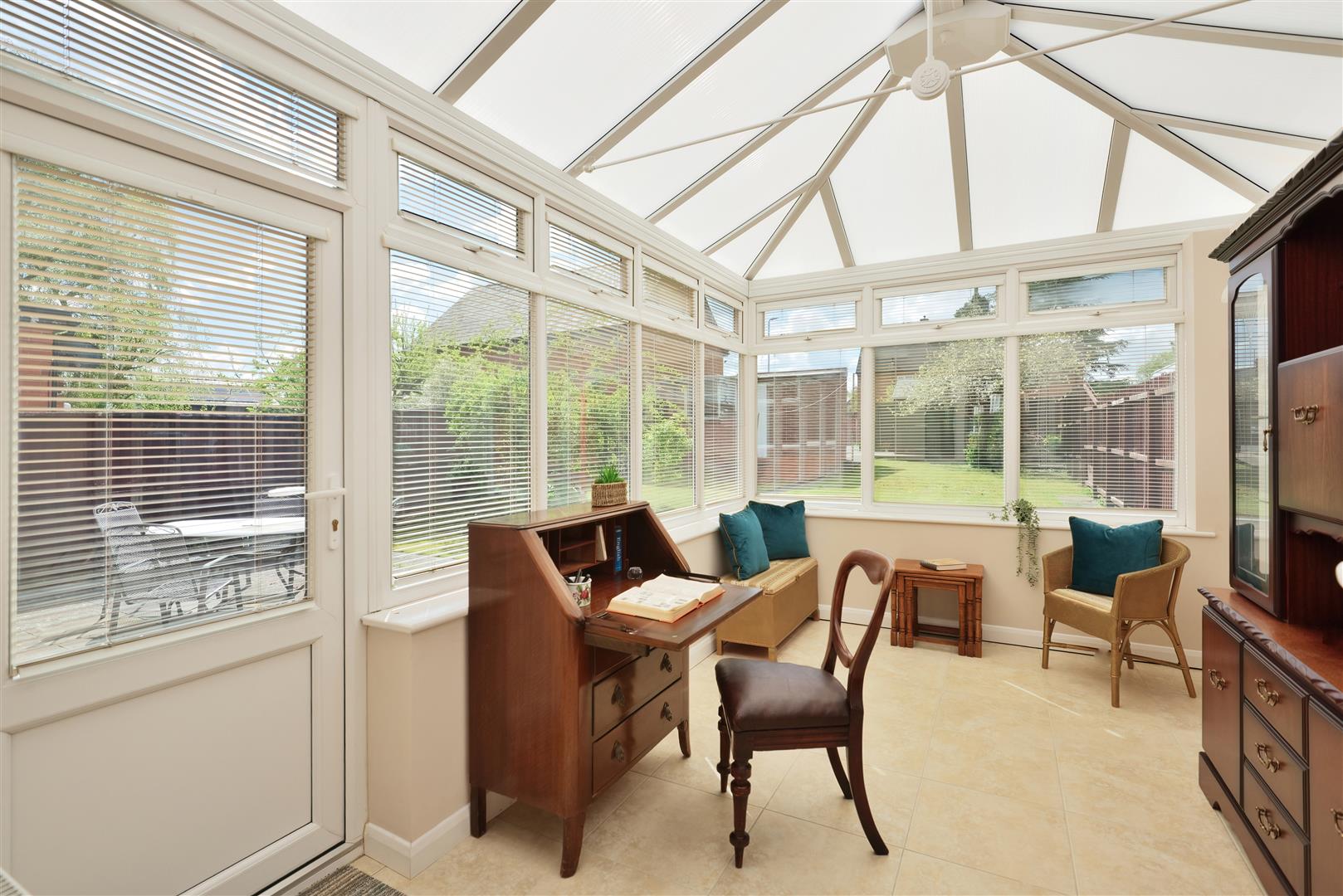 On arrival, a porch and front door lead into a reception hall with understairs storage and doors to the kitchen and sitting room, which has a bay window to the front, a fireplace and an archway through to the dining room. From here access can be gained to a lovely conservatory/garden room with fitted blinds and windows, all overlooking and door leading out to the gardens.