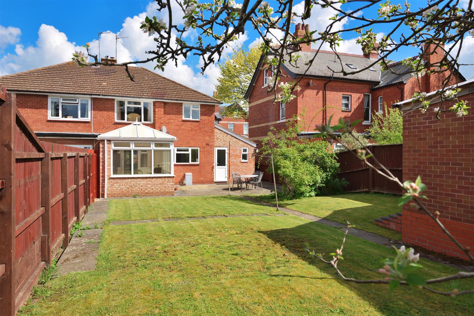 The property has a pedestrian gate to the front from Eign Road with well enclosed gardens which are laid to lawn with a herbaceous border. A pathway then leads to the rear of the house where there is a good-sized patio and larger lawned gardens, an apple tree and a central pathway. The rear gardens are well enclosed by wooden fencing and lead to the rear, where there is private access from Harold Street. A gated entrance leads to a parking space and to a detached garage (15’5 x 11’4) with up and over door, power and lighting. There is also a separate garden store.