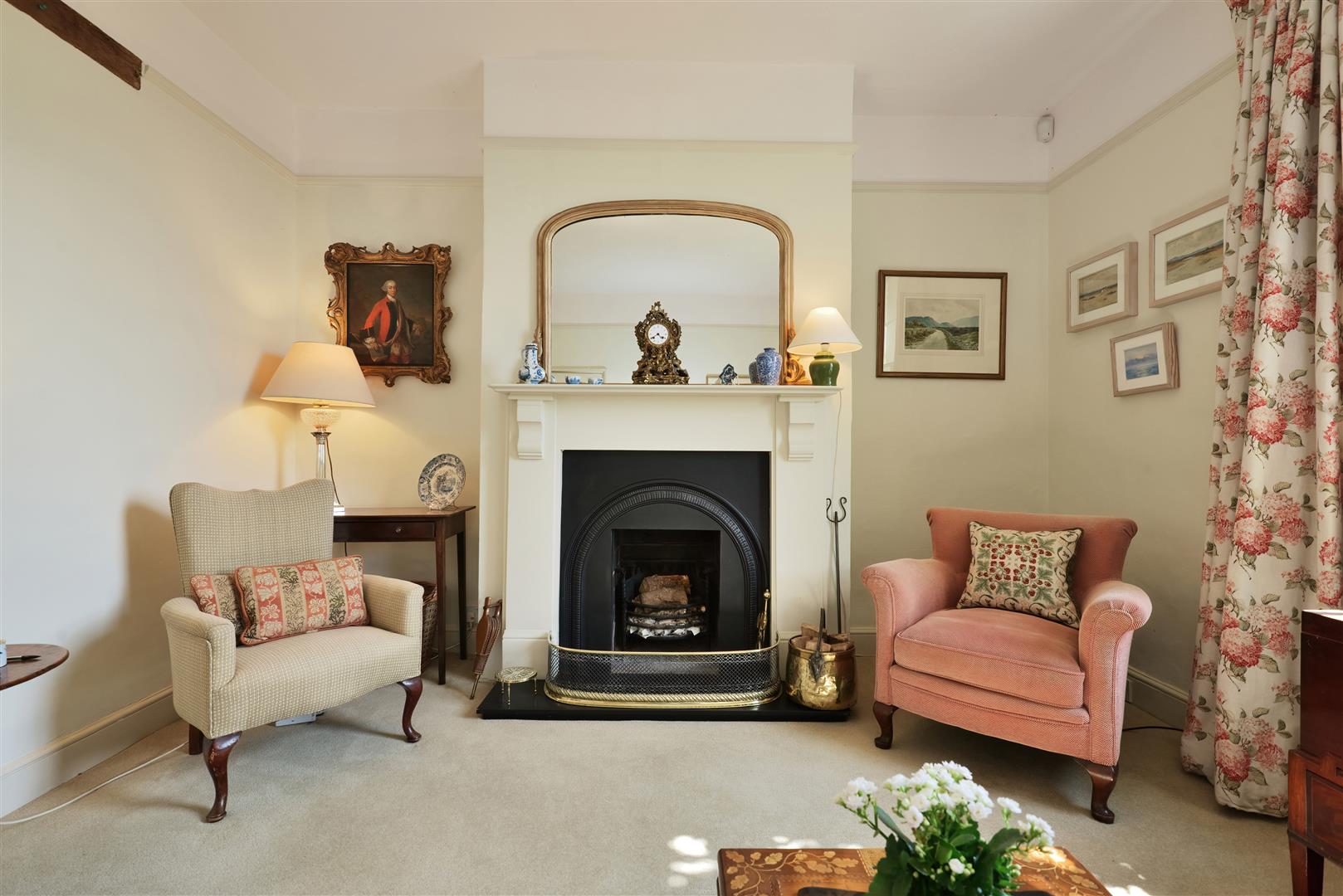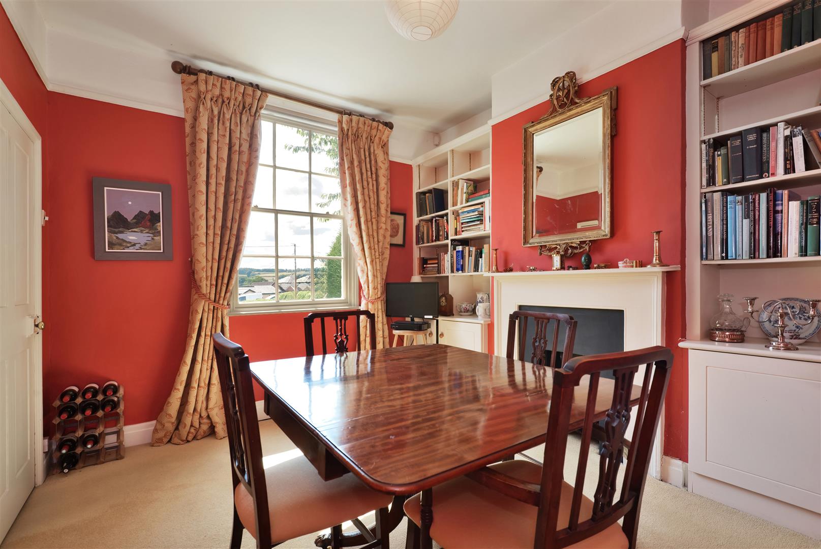 On arrival, a wrought iron gate and path lead to the front door which opens into a welcoming entrance hall with flagstone floor, radiator and central heating thermostat. On either side of the hall are the two main reception rooms, both with sash windows to the front, fitted carpets, radiators and picture rails. In the dining room a decorative fireplace has useful fitted cupboards and shelving on either side of a former fireplace and in the sitting room a working fireplace is ideal for winter evenings. The entrance hall then opens out to a larger rear hall, again with a flagstone floor and has a window to one side. The kitchen/breakfast room has plenty of useful cupboard space, along with wooden working surfaces, a deep fill sink, gas fired central heating boiler and recess with Belling range style cooker and direct access to outside.