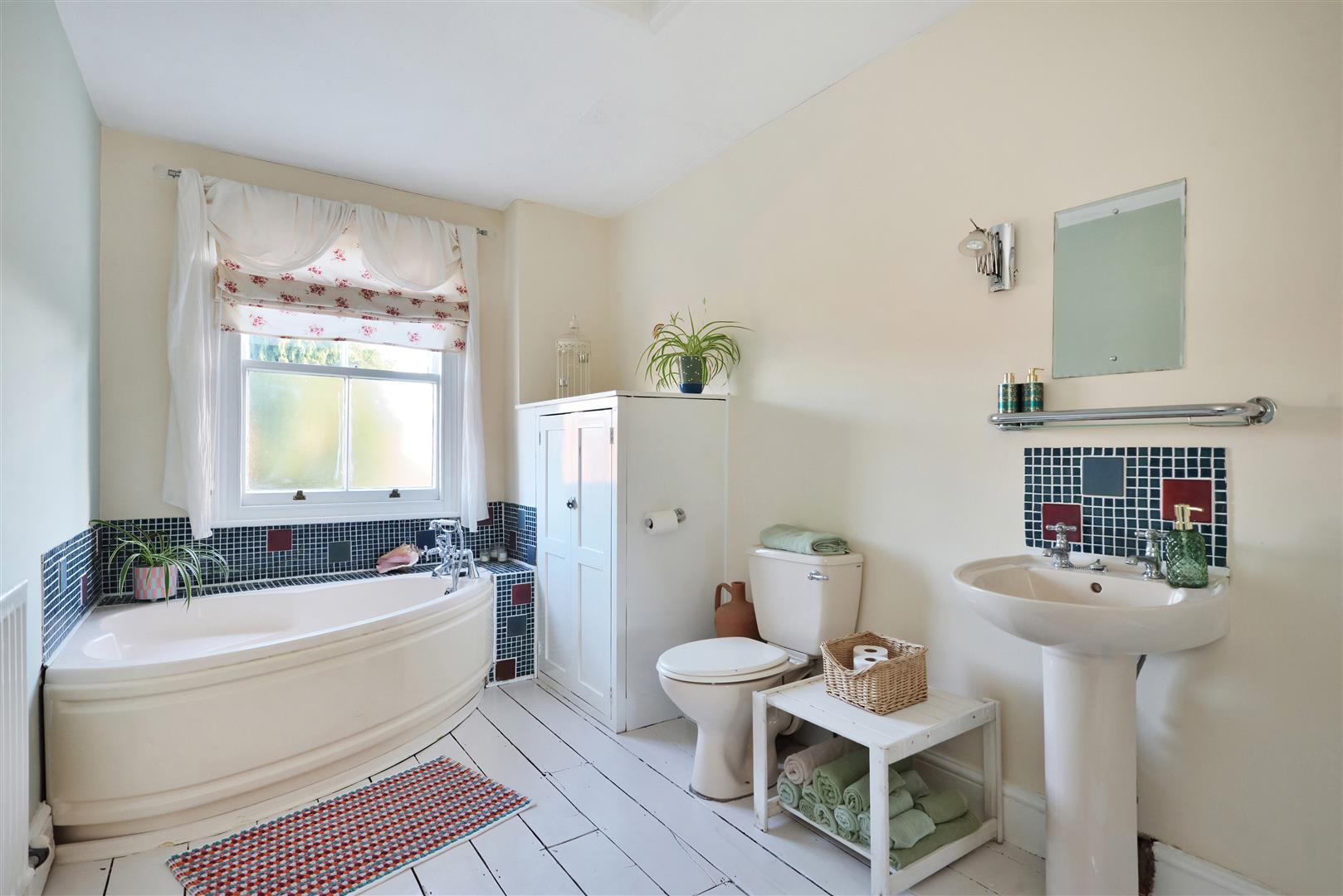 A separate large bathroom again has a pained wooden floor, a shower cubicle, corner bath, washbasin, WC, radiator, useful fitted cupboard and window to the rear