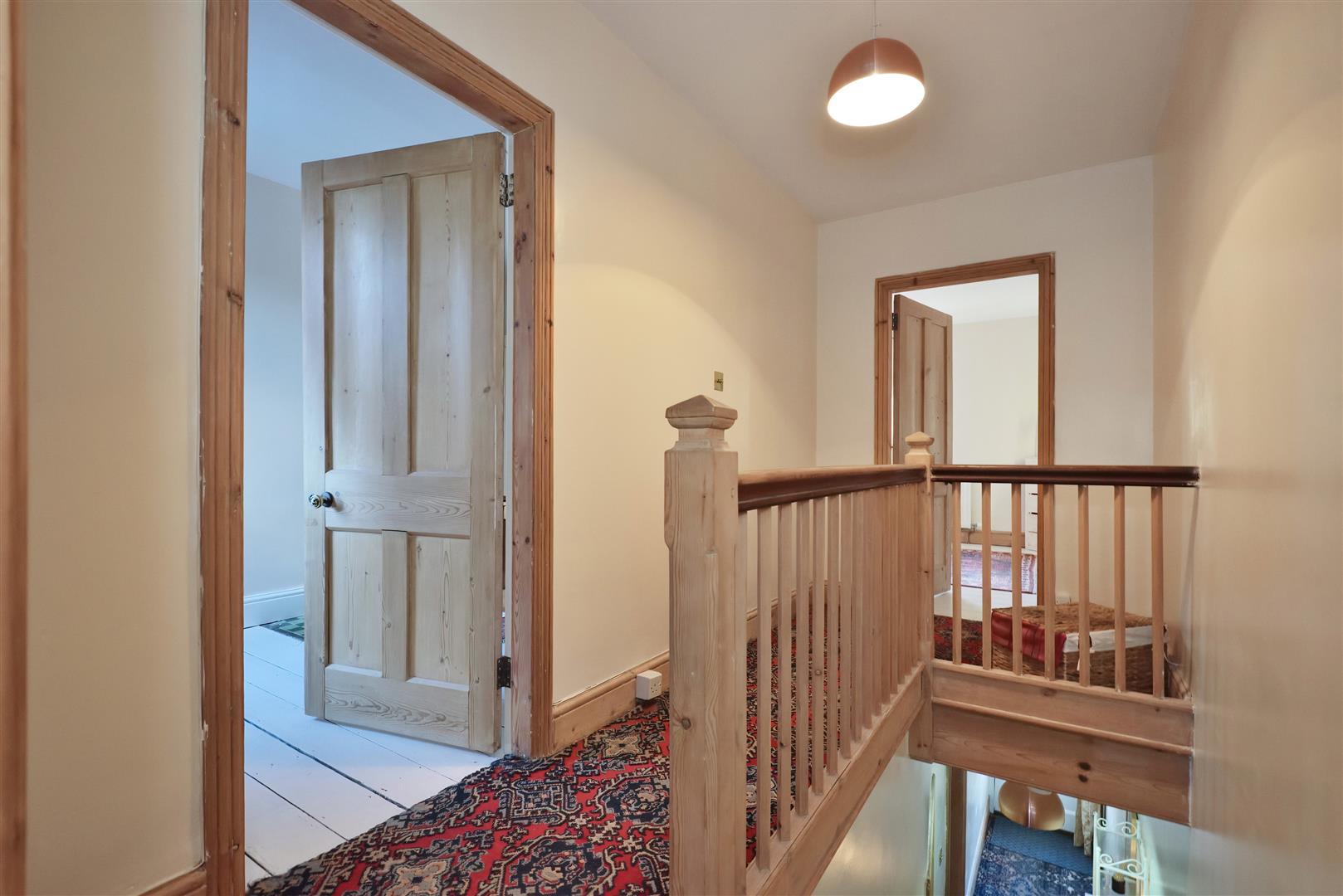 From the reception hall a carpeted staircase then leads up to a first-floor landing with glazed access to roof space. Door then leads to two excellent double bedrooms, both with painted wooden floors, sash windows, wardrobe storage, radiators and power points.