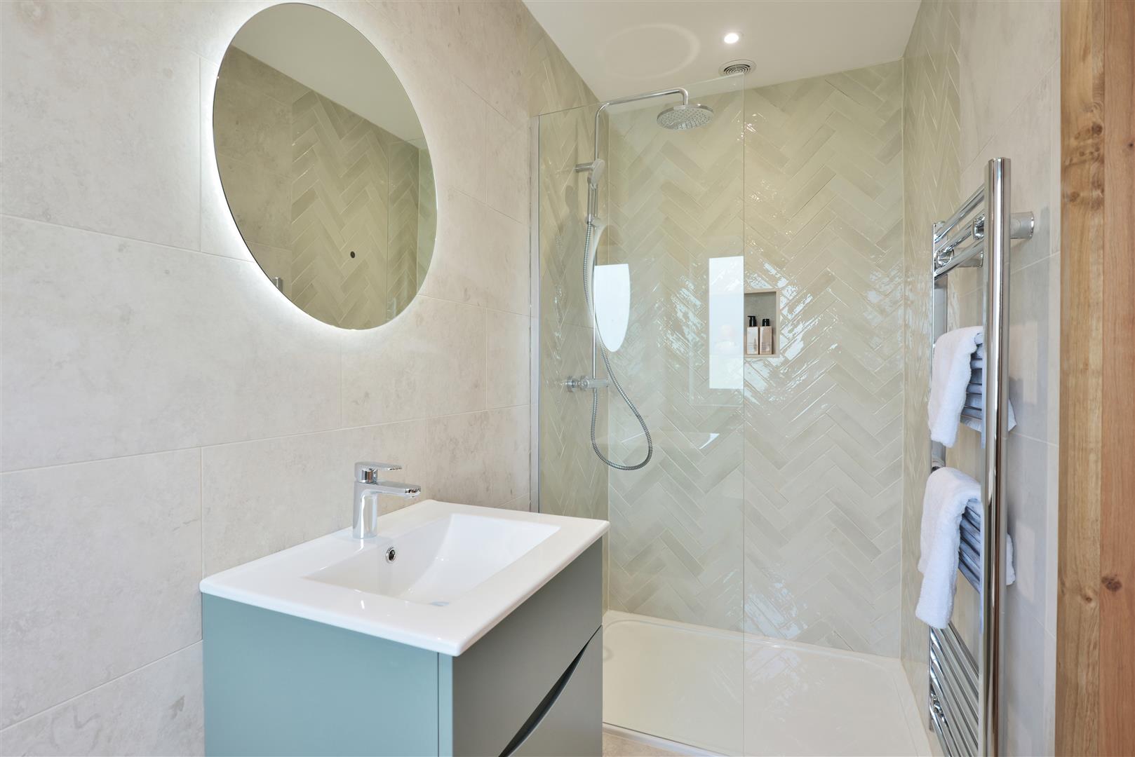 - Electric underfloor heating in the bathrooms.
